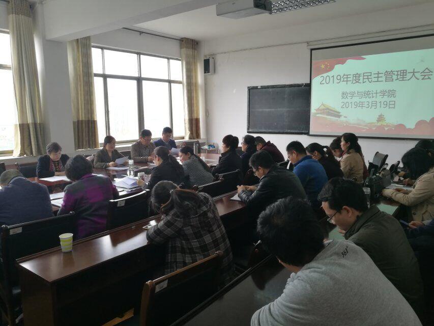 经数学与统计学院分工会与党总支研究,报校工会批复,我院于3月19日至20日召开2019年度民主管理大会,会议讨论并通过了朱玉清院长所做的数学与统计学院工作报告,陈同勉书记所做的数学与统计学院分工会工作报告。
