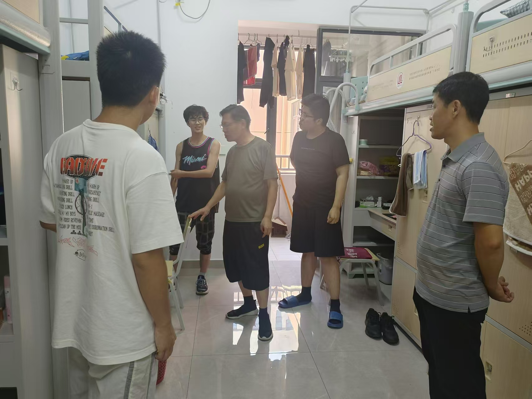 本网讯(学生记者/朱毅豪)9月7日,数理学院院长郭学军、党委副书记赵刚彬及新生辅导员谭萌一行,亲自前往新生宿舍进行走访,并与新生们进行了亲切交流。