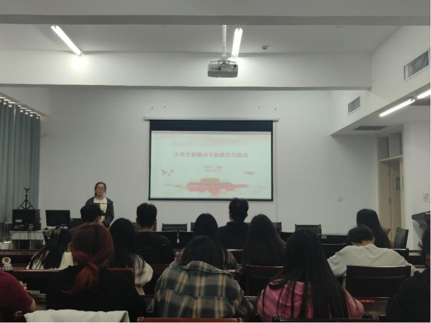 活动伊始,王萌老师通过精彩的专题深入阐释了大学生积极分子责任与担当的重要内涵。王萌老师强调:“大学生积极分子作为党组织的后备力量,肩负着时代赋予的特殊使命,其责任与担当意识的强弱直接关系到党和国家事业的发展。”紧密结合现实案例,详细讲述了在不同领域中大学生积极分子如何凭借强烈的责任感和使命感发挥先锋模范作用,深入浅出的分析令在场学员深受启发。