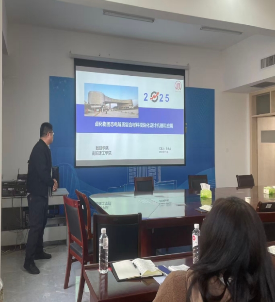 11月15日,南阳理工学院2025年第四期暨数理学院第五届博士论坛在数理学院三楼会议室召开。同济大学数学科学学院副院长、博士生导师梁汉营教授及河南大学数学与统计学院副院长、博士生导师解俊山教授应邀参加了博士论坛。本次论坛由数理学院副院长牛玉俊教授主持,我院博士曹玉雷、赵青松、路梦伟、佀荣荣、吴艳龙、靳心惠、李克明、乔申分别做了报告,数理学院全体博士及部分青年教师共40余人参加了论坛。