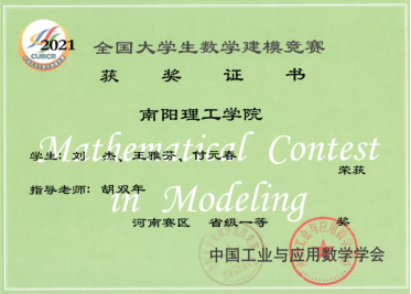 本网讯(学生记者/韩潇堃)2021年全国大学生数学建模竞赛河南赛区成绩揭晓,我校学子在竞赛中再创佳绩,获得省一等奖6项,省二等奖6项,省三等奖11项。