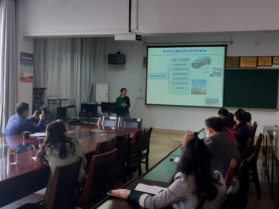 本网讯(特约记者/李超)4月21日,中国科学院山西煤炭化学研究所博士生导师、山西省炭材料重点实验室主任宋燕研究员应邀来数理学院交流,并作了题为“多孔炭的制备、结构调控及其新能源材料与器件中的应用”的学术报告。会议由学院党委书记牛军科主持,新能源材料与器件专业相关教师参会。