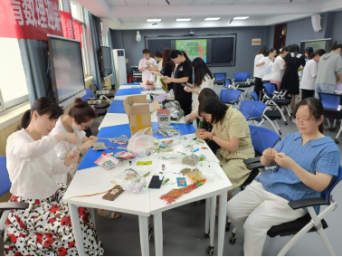 本次活动围绕端午节民间传统习俗特征,引导师生认知、尊重、继承和弘扬传统文化,一起参与包粽子、缝制香囊、编织五彩绳等活动。大家纷纷露出看家本领,一捋一填,压紧扎捆,包出美味粽子;一钩一锁,细针轻舞,织出祈福香囊;一折一缠,巧手穿梭,编出五彩绳。