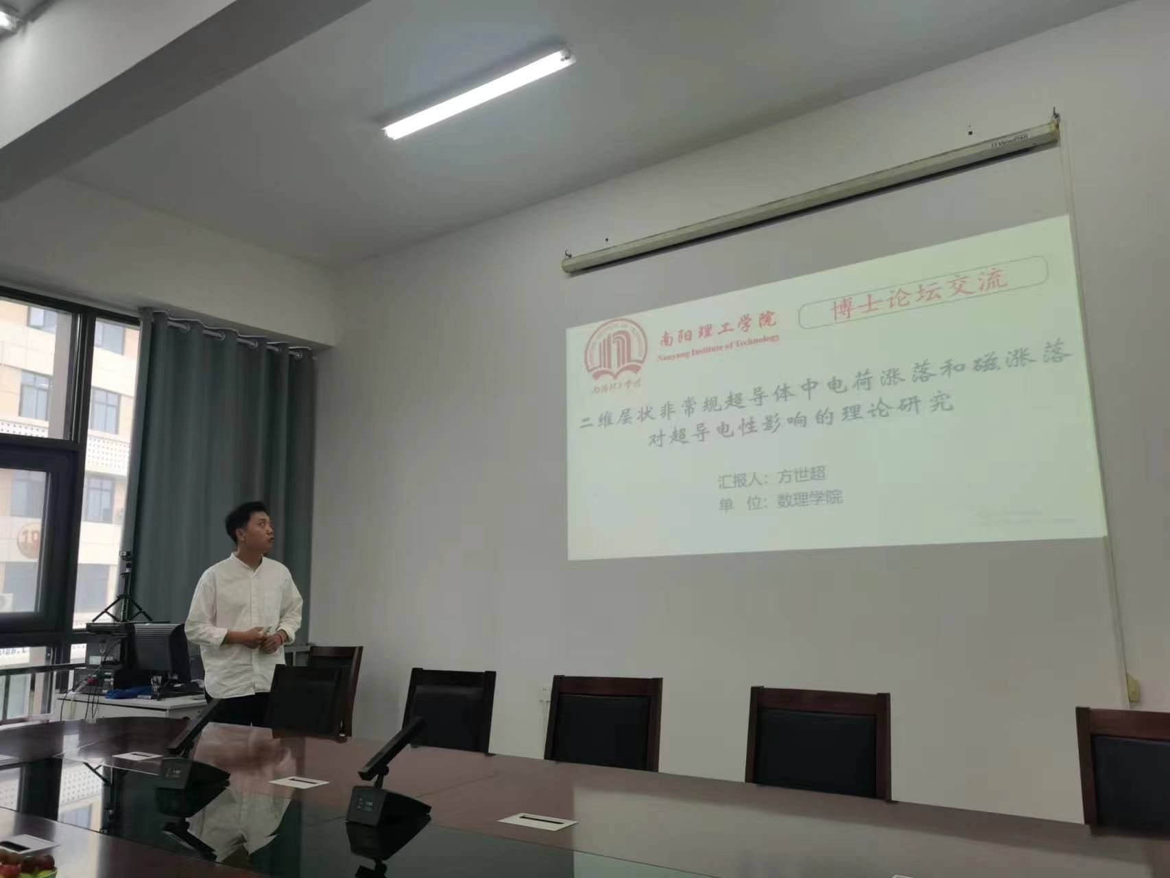 方世超博士做了“二维层状非常规超导体中电荷涨落与磁涨落对超导电性影响的理论研究”的报告。