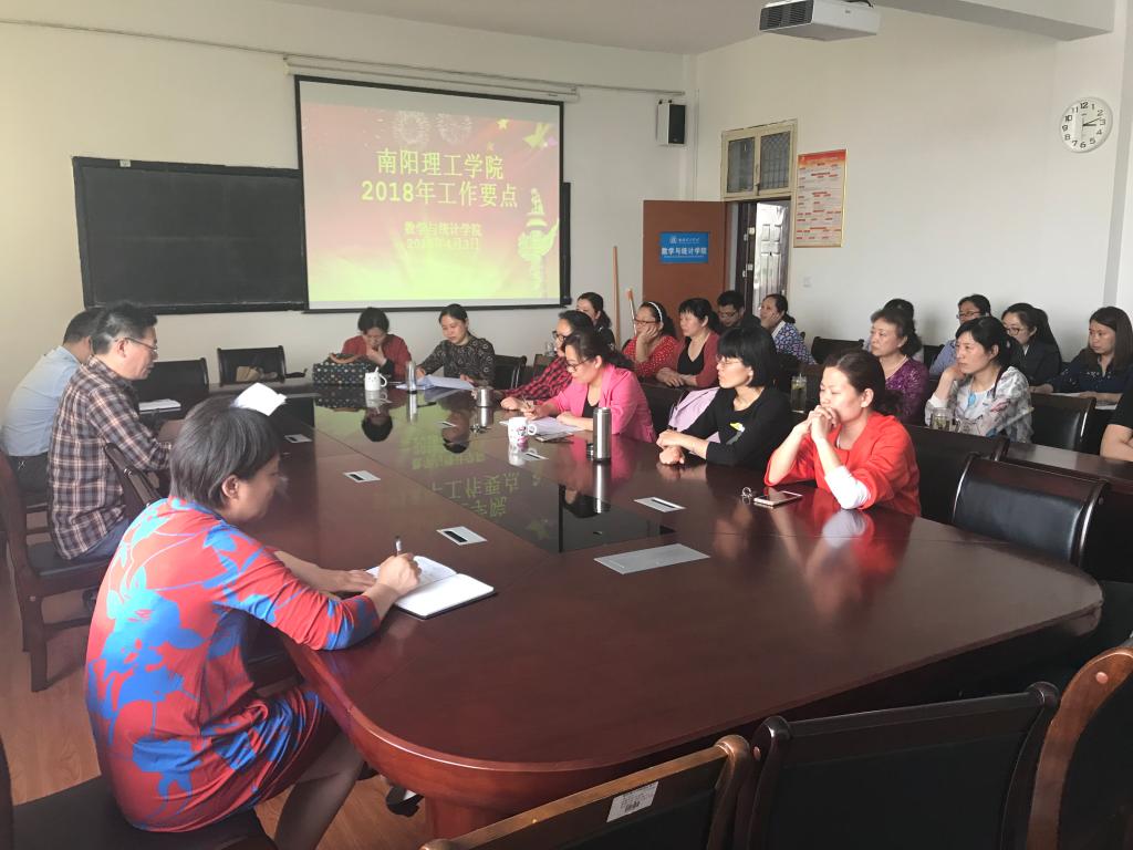 4月3日下午十五点,数学与统计学院召开全体教师学习落实2018年学校工作要点会议,安排部署近期工作。会议由郭学军副院长主持,向学院全体老师传达了两项重点内容。