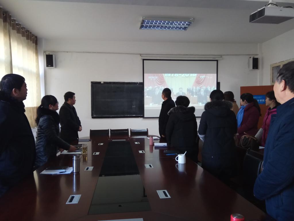 本网讯(记者/胡丽)2018年12月18日上午10时,数学与统计学院部分师生在学院会议室集中观看庆祝改革开放40周年大会直播。