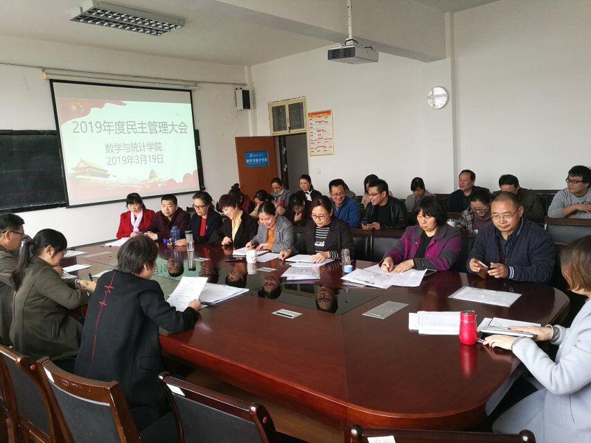 经数学与统计学院分工会与党总支研究,报校工会批复,我院于3月19日至20日召开2019年度民主管理大会,会议讨论并通过了朱玉清院长所做的数学与统计学院工作报告,陈同勉书记所做的数学与统计学院分工会工作报告。