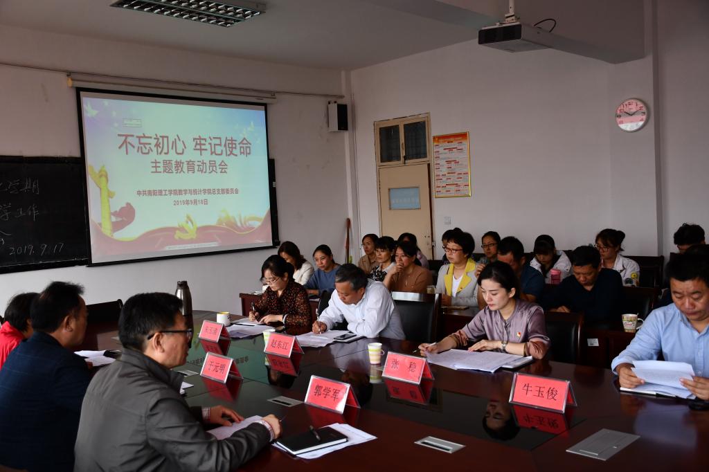 本网讯(特约记者/胡 丽)9月18日上午,数学与统计学院在学院会议室召开“不忘初心、牢记使命”主题教育动员大会。学院党总支副书记陈同勉作动员讲话,动员会由副院长郭学军主持。全体教师党员和学生党员代表参加动员会。