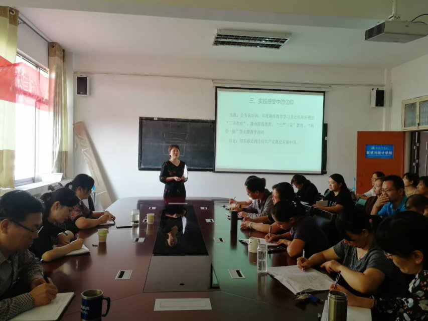 本网讯(特约记者/胡 丽)2019年9月27日,数学与统计学院党总支副书记陈同勉以“加强党性修养学习 紧跟时代前进步伐”为题,为全体教师上了一堂主题教育专题党课。