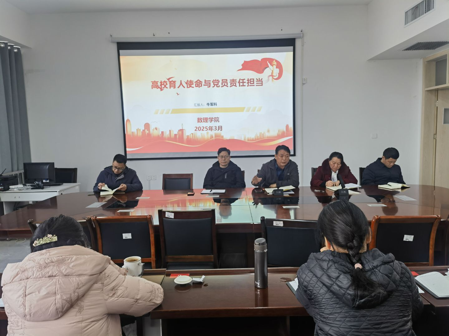 2025年3月18日,数理学院于17号楼310会议室召开了以“高校育人使命与党员责任担当”为主题的党课教育。此次会议由数理学院党委书记牛军科主持,全体教师和部分学生代表共同参会。