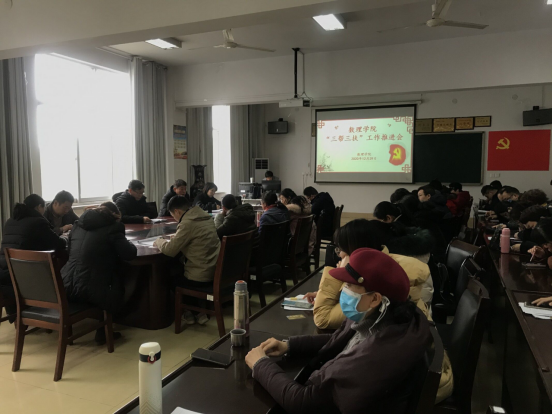 2020年12月29日,数理学院召开全体党员“三帮三扶”推进会议。进一步加强学院党建工作与教学行政工作的相互融合,相互促进,构筑学生的思想政治引领工作大格局,以满足学生成长发展需求和期待,课堂内外教育同向同行,形成协同效应,提高育人质量,保证学院健康持续发展。对下一步工作进行研究部署。