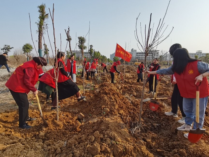 活动开始,教师党员干部充分发挥党员先锋模范作用,与学生们手持铁锹、水桶,带着树苗,充满干劲地来到了活动场地。全体党员师生分工协作,进行选地、除草松土、栽植树苗等,现场一片热火朝天的劳动景象。