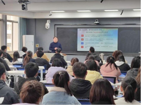 郭学军以“青年大学生担当的历史重任”为主题为同学们讲解了新时代大学生肩负的历史重任。他强调,我们是新时代的主力军,要担当起时代的职责,做到知行合一。