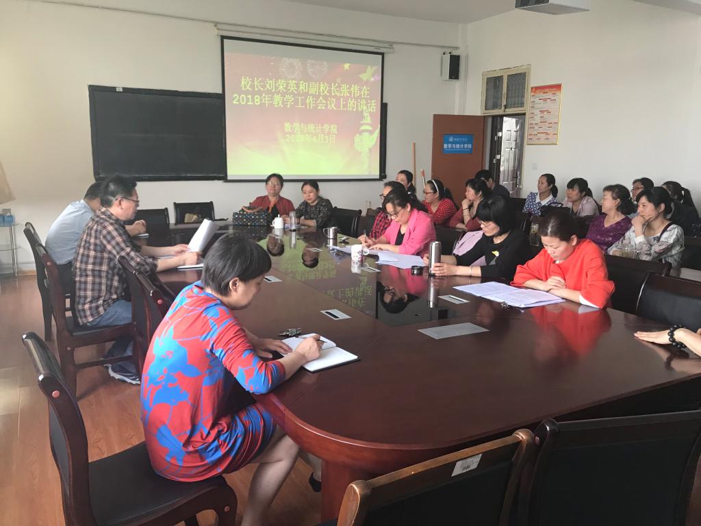 4月3日下午十五点,数学与统计学院召开全体教师学习落实2018年学校工作要点会议,安排部署近期工作。会议由郭学军副院长主持,向学院全体老师传达了两项重点内容。