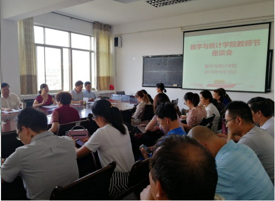 在第34个教师节的9月10日下午,数学与统计学院在会议室召开了2018年教师节座谈会。学院领导班子和全体教师出席了会议,会议由院党委数集秦道领岭主持。