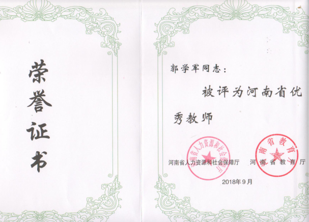 日前,河南省人力资源和社会保障厅、河南省教育厅下发了《关于表彰河南省教育系统先进集体和先进工作者的决定》(豫人社函[2018]418号),我院副院长郭学军老师被评为河南省优秀教师。