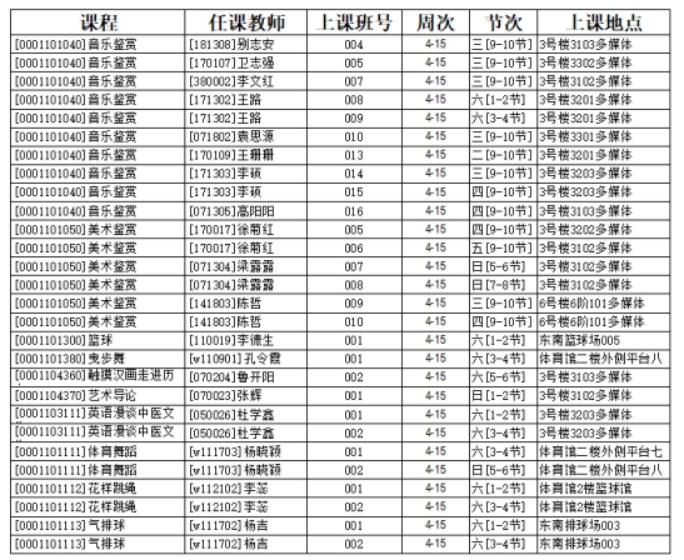 2021-2022学年第一学期全校公共任选课课程已选课完毕,根据《南阳理工学院公共选修课管理办法》(南理工字【2017】59号)规定,选修人数不足开班人数的课程不予开班。现将撤销班级予以公布: