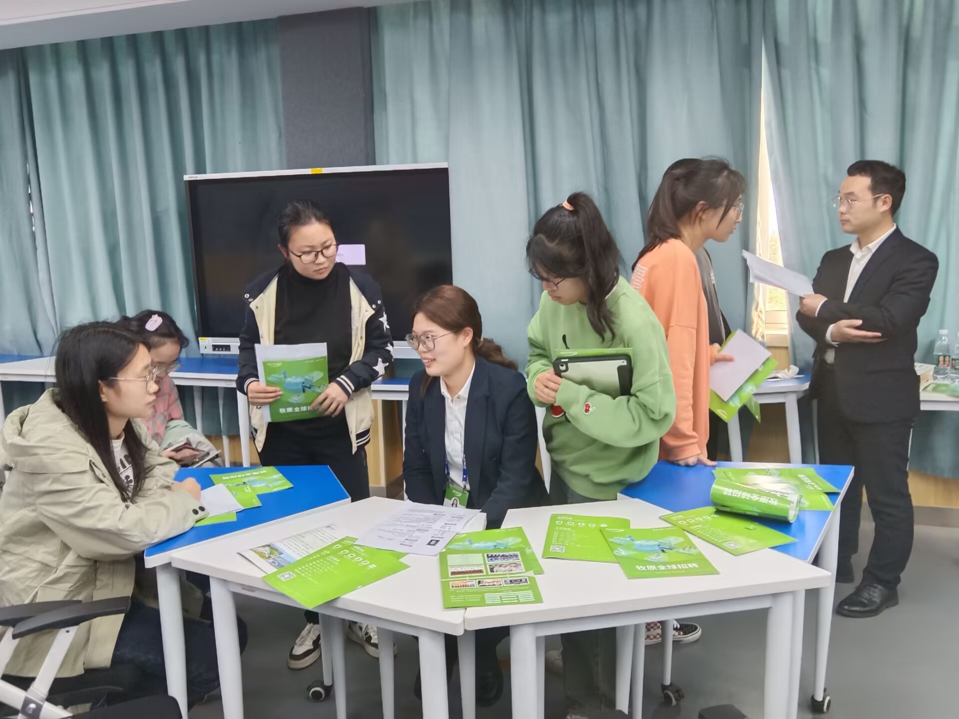 同为南阳理工学院毕业的18届学生尹亚琦代表牧原集团在此介绍了牧原集团的人才待遇和企业实力,又以自身经历和实践经验告诉学弟学妹们“犹豫就会败北”,要积极主动捉住机会,提前了解公司所招的岗位需求和标准,在简历中突出自己的优势.经过各位指导老师们的耐心辅导,毕业生们能够更好的了解自己的不足之处并加以改正。