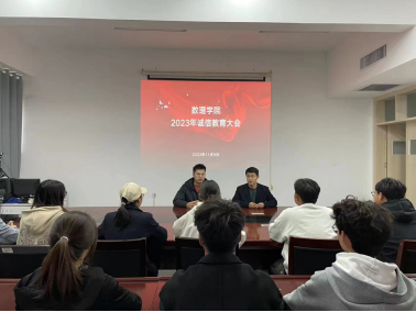 本网讯(学生记者/王小婷)为进一步落实高校国家助学资助政策,促进教育公平,11月8日,我院在17教310会议室开展数理学院2023年诚信教育活动暨高校国家助学贷款合同和承诺书签订仪式。学院党委副书记赵刚彬、资助专干老师谭萌出席会议,学院全体参贷学生参加会议。