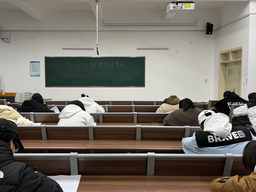 本网讯(学生记者/张卓欣)12月9日,数理学院在23教307举办青马学堂结业考试。学院青马学堂全体学员参加。