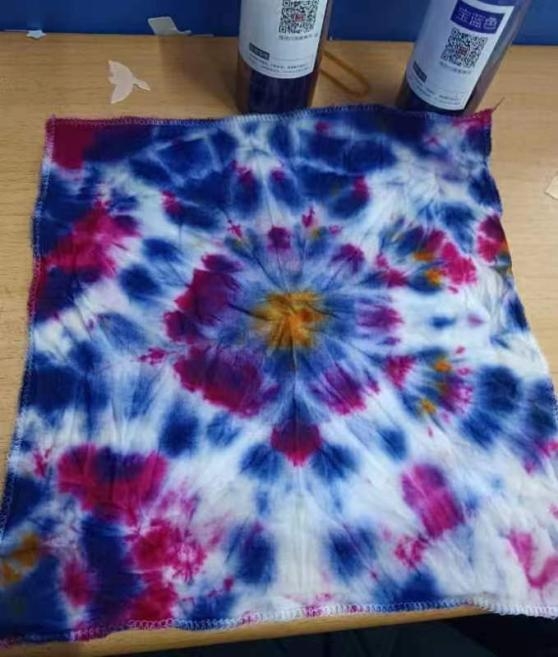 扎染的独特就在于随机性和不可复制性,每一次创作都是全新的体验。通过此次活动,同学们不仅领略了传统工艺的魅力,也锻炼了同学们的动手能力和想象力,提升了自身的艺术素养。
