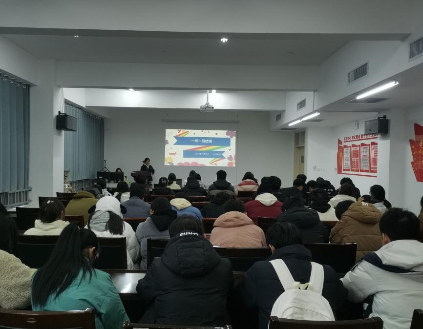 冯清对此次“一班一品”活动做出总结。她首先对大家在活动中付出的努力和取得的成果表示肯定和赞赏,同时她也对活动暴露出的问题进行总结,她表示,希望同学们能够端正态度,认真对待项目活动,重视PPT制作,锻炼台风,从而能够打造优质”班级品牌”,加强学风建设。