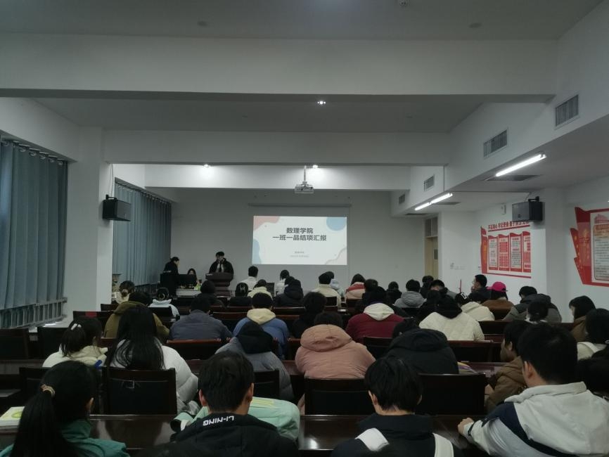 本网讯(学生记者/赵小雯)为增强班级凝聚力,提升学生团队精神,促进各班级之间的交流与合作,12月26日,数理学院在17教310开展“一班一品”评审会。分团委副书记冯清,辅导员谭萌、石月、呼煜鹭担任评委,全体学生干部参加。