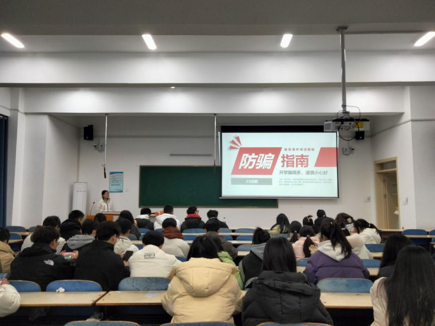 班会中,各班团支书邀请同学们分享自己或身边人被欺骗的真实经历,让防诈骗教育能够更贴合现实、更加直观地了解诈骗的多样性和危害性。同时,他们向同学们详细介绍了诈骗的常见手段,讲解了实用的防诈骗技巧,帮助他们能够在以后的生活中快速地识别出诈骗行为,从而更好地去应对。
