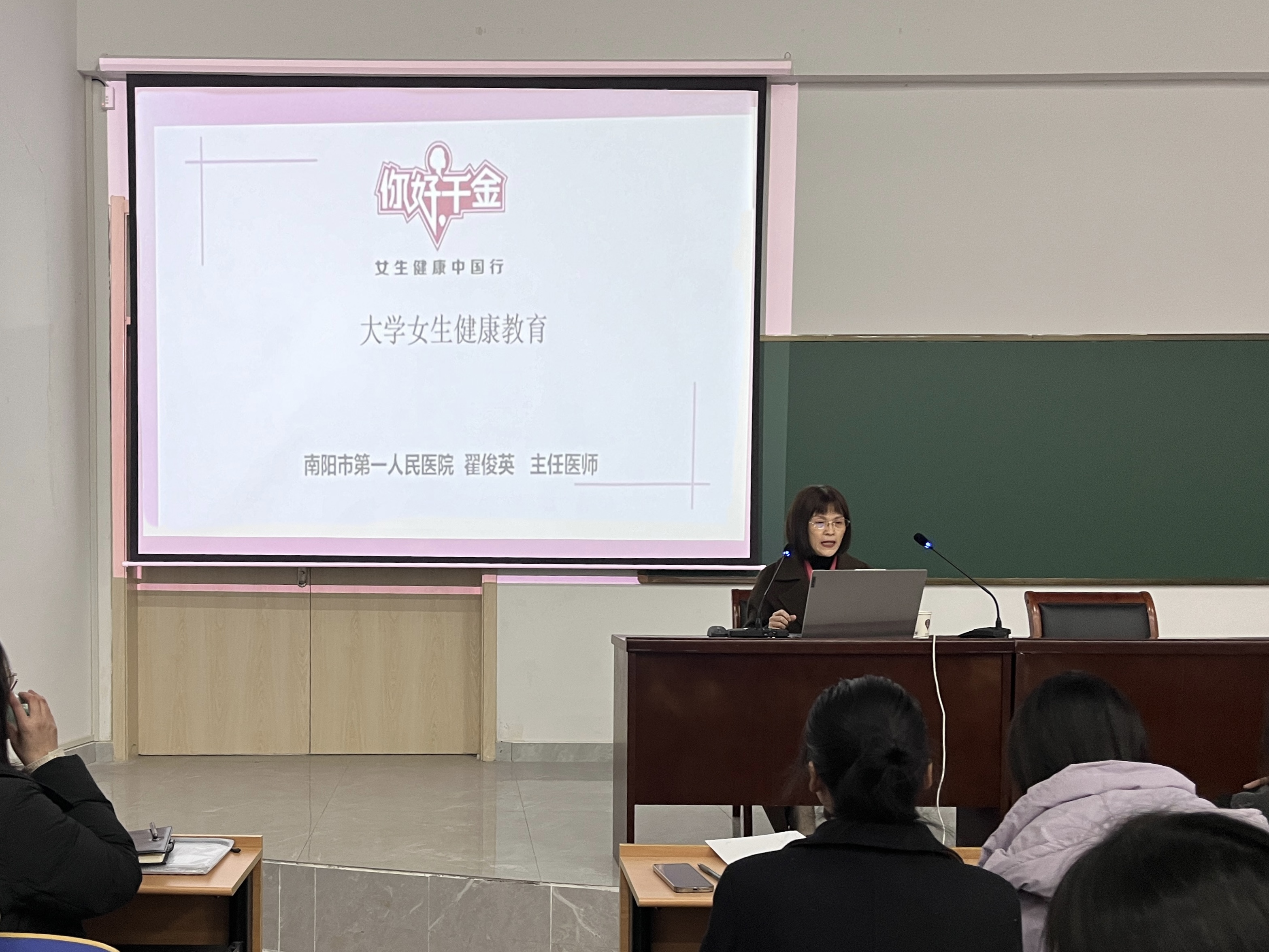 本次活动邀请到南阳市第一人民医院生殖科主任医师翟俊英为大家做大学女生健康教育讲座。翟主任结合多年临床经验,用生动形象的图文演示以及互动问答等形式向参会学生详细讲解女性健康、常见妇科疾病及防治、女性保健及科学避孕等相关知识,并积极引导大家爱护身体,定期进行体检,养成健康、科学的生活方式。 讲座结束之后, 翟主任还就大家关心的问题进行了详细解答。整场讲座内容深入浅出,语言通俗易懂,让大家在有关女性健康与保健知识方面受益匪浅。