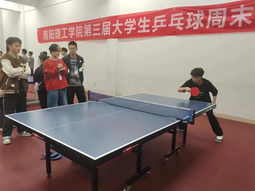 本网讯(学生记者/朱毅豪)为弘扬体育精神,激发同学们对体育运动的热爱,3月16日,南阳理工学院在体育馆一楼开展南工第十九届乒乓球比赛,数理学院运动员参加比赛。