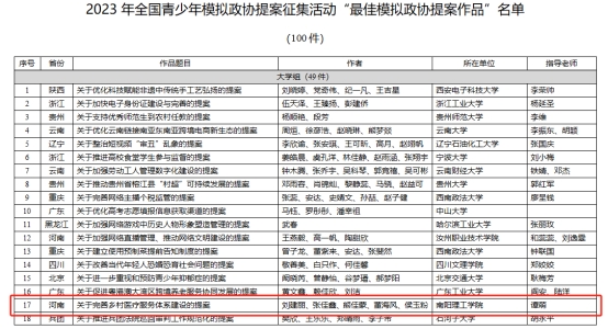 本网讯(特约记者/谭萌)4月5日,共青团中央发布2023年全国青少年模拟政协提案征集活动评审结果。我校数理学院的《关于完善乡村医疗服务体系建设的提案》荣获“最佳模拟政协提案作品”!