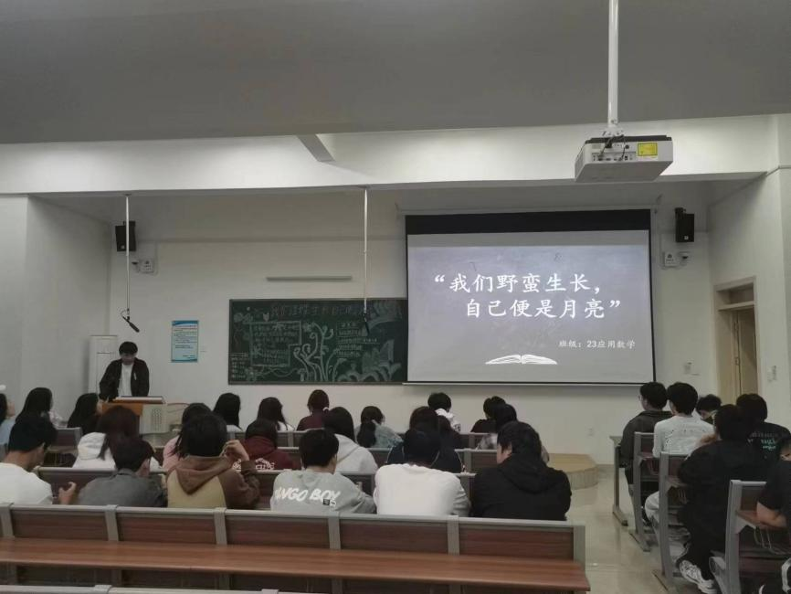 本网讯(学生记者/向双贵)为增强学生的自信心,促进同学们的心理健康发展,4月14日,数理学院在23教开展“我们野蛮生长,自己便是月亮”心理主题班会,23级全体学生参加。