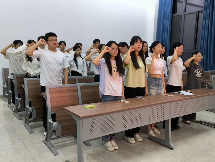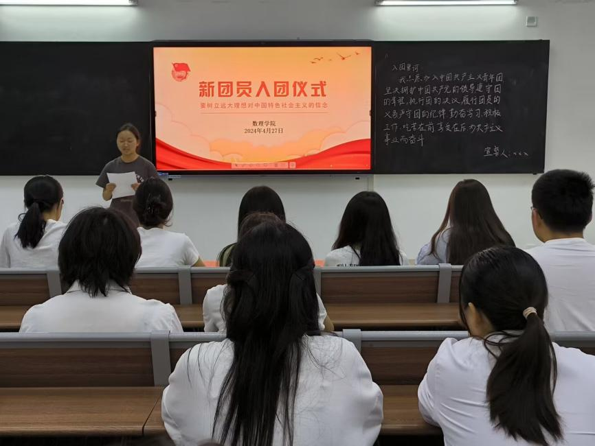 本网讯(学生记者/曹梦琦)为加强新团员的思想政治教育,增强他们的社会责任感,4月27日,数理学院在23教107开展新团员入团仪式,数理学院新团员参加,熊佳蒙担任主持。