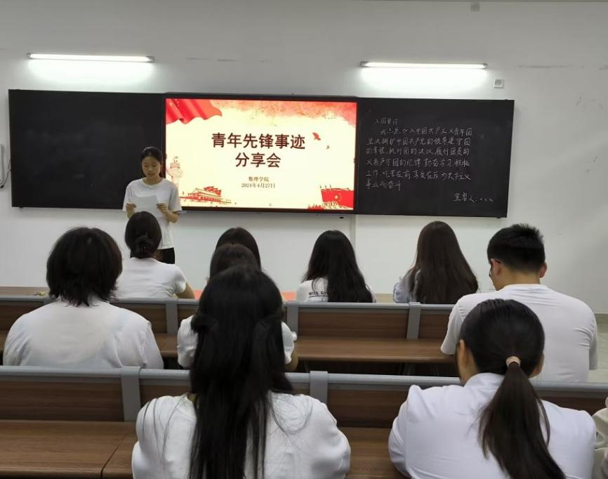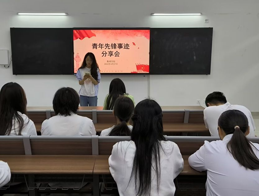 本网讯(学生记者/赵小雯)为弘扬青年先锋精神,激发同学们的奋斗热情,4月27日,数理学院在23教107举办青年先锋事迹分享会,本次活动我院部分同学积极参与,共同聆听先锋故事,感悟青春力量。