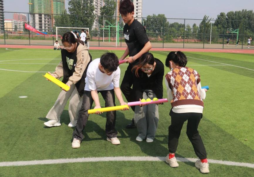 活动伊始,负责人向同学们介绍活动的背景和目的,并宣布活动正式开始。活动现场,各游戏负责人迅速布置好场地,并向参赛队伍详细讲解了游戏规则。式开始。活动包括“PVC管接力”、“球到渠成”等多个项目。活动现场,同学们积极参与,团结协作,活动现场洋溢着青春的活力和激情。同学们在有趣的活动中不仅锻炼了自身的综合素质,更在团队合作中加深了彼此间的了解和友谊,增强了团队凝聚力。