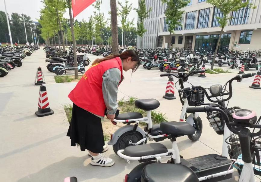 4月27日,数理学院学生组织的同学们在22宿舍楼开展了“整齐摆车,人人有责”活动。同学们将自行车摆放整齐,倡导文明用车,共同营造整洁有序的校园环境。