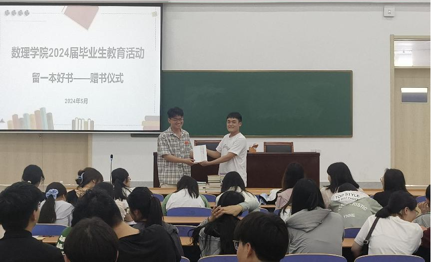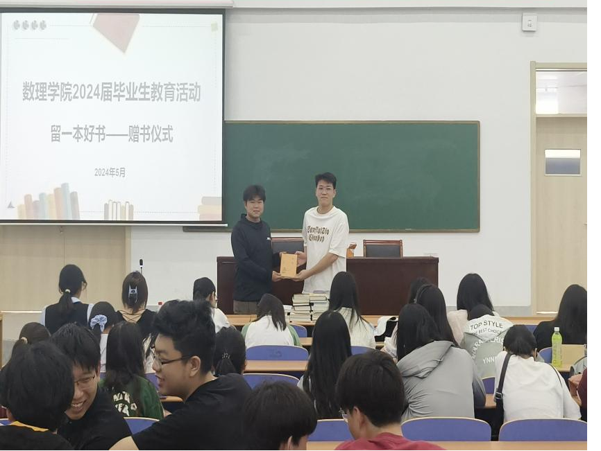 活动现场,毕业生们手持自己精心挑选的书籍,依次走上台前,将书籍赠予数理学院代表。每一本书都承载着毕业生们的回忆与智慧,它们将成为学弟学妹们学习的宝贵资源,学院将收集来的书籍放在读书角供大家借阅。他们表示,通过参与此次活动,他们更加深刻地认识到了传承知识的重要性,同时,他们也希望学弟学妹们能够珍惜这些书籍,从中汲取营养,不断进步,为学院的未来贡献自己的力量。