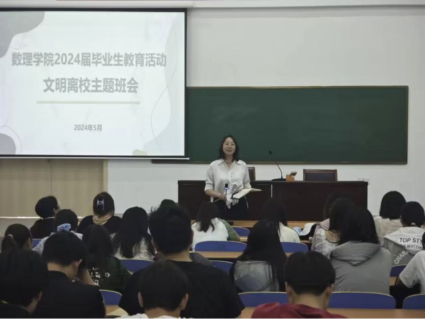 本网讯(学生记者/曹梦琦)为确保2024届毕业生文明、安全、和谐、有序离校,5月23日,数理学院在17教115开展2024届毕业生教育活动,毕业班辅导员冯清主持会议,大四全体学生参加活动。