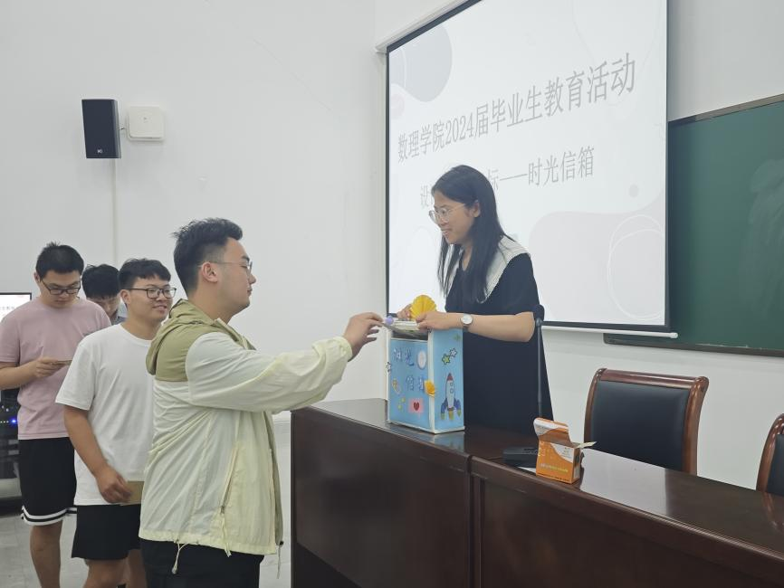 本网讯(学生记者/朱毅豪)为激励毕业生展望未来,明确人生目标,为即将开始的新征程注入动力,5月23日,数理学院在17教115开展2024届毕业生教育活动——“设计一个好目标”时光信箱,全体毕业生参加。
