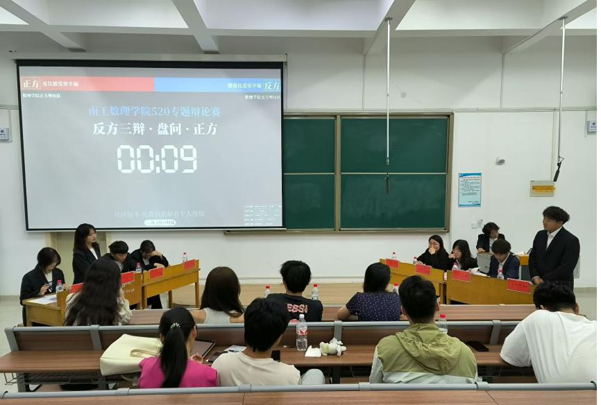本网讯(学生记者/王小婷)为促进思辨精神的传承和发扬,增强学生知识储备和学习,5月24日,数理学院于23教102开展520专题辩论赛,23级全体学生参加。