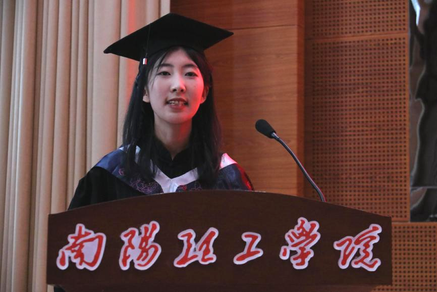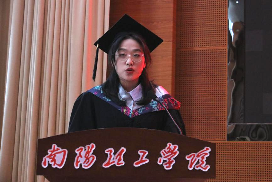 在临别感言环节,毕业生代表李欣颖和靳上典分别发表了感言。李欣颖表示,毕业不是分离,而是为了遇见更好的自己。她建议毕业生们将学习放在首位,保持自律,勇于尝试新事物。靳上典则分享了自己四年的大学生活感悟,建议学弟学妹们合理规划时间,向前看,将目光放在未来上。
