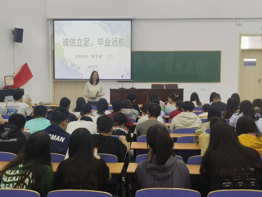 冯清详细地向学生解读了国家助学贷款的贷款政策、还款政策以及还款流程,加深同学们对助学贷款政策的了解,同时向大家列举一些还贷的相关案例,深化学生对诚信还贷重要性的认识,了解诚信缺失的危害性,鼓励学生树立正确的信用观念。
