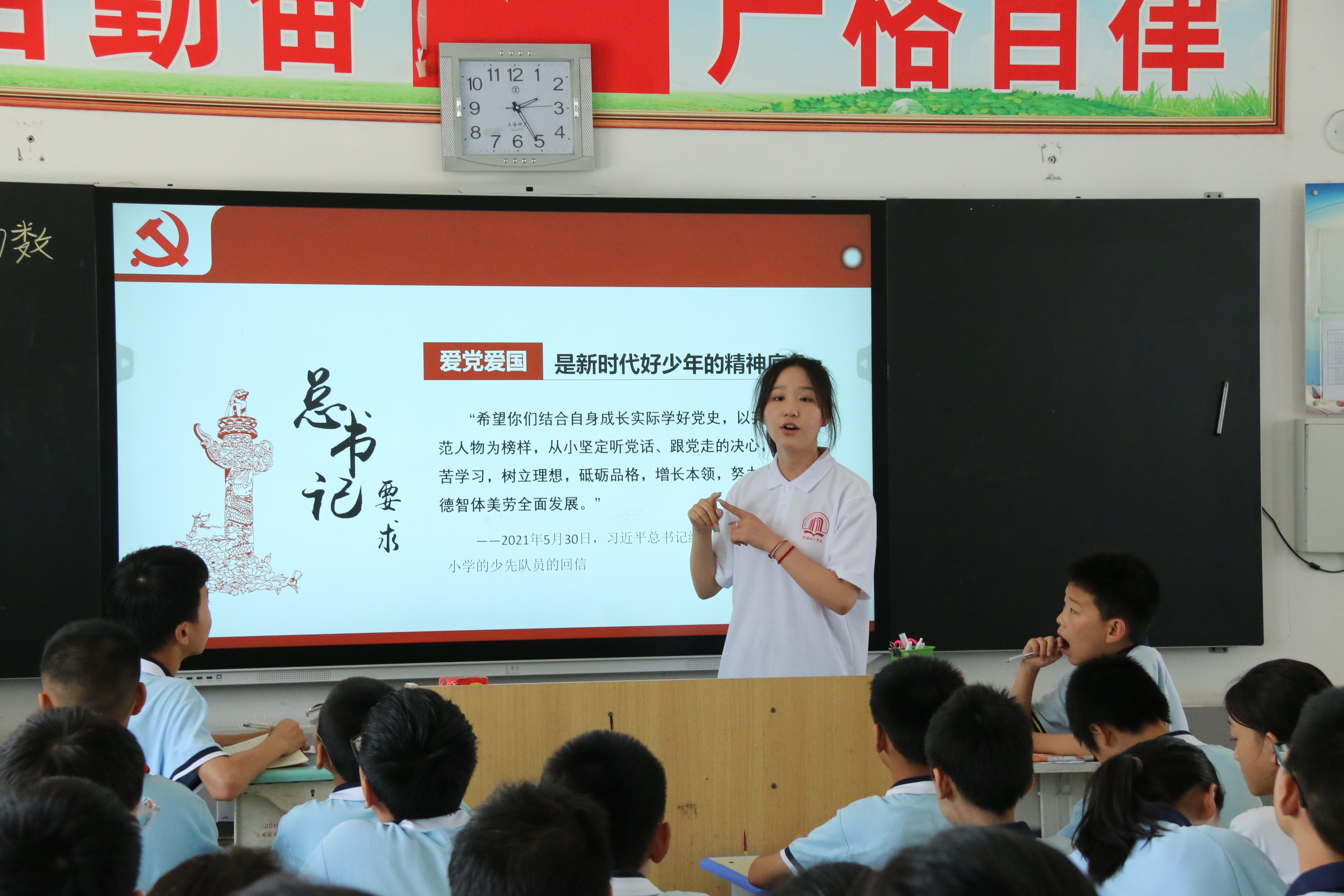 实践队伍进入学生教室,围绕习近平总书记对中小学生重要讲话、习近平总书记视察南阳时的重要讲话精神、南水北调精神等主题进行课堂宣讲活动。