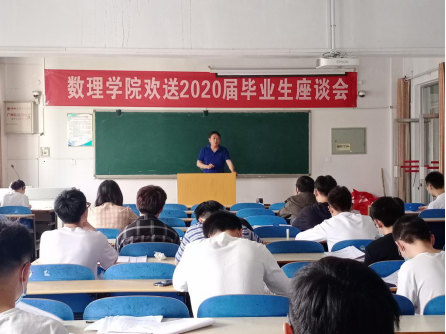 本网讯(特约记者/胡丽)5月21日上午,数理学院在13510教室举办欢送2020届毕业生座谈会。数理学院领导班子和部分返校毕业生参加。进入会场前,全体参会师生均佩戴口罩,进行扫码、测体温、消毒等环节,严格做好防控工作。