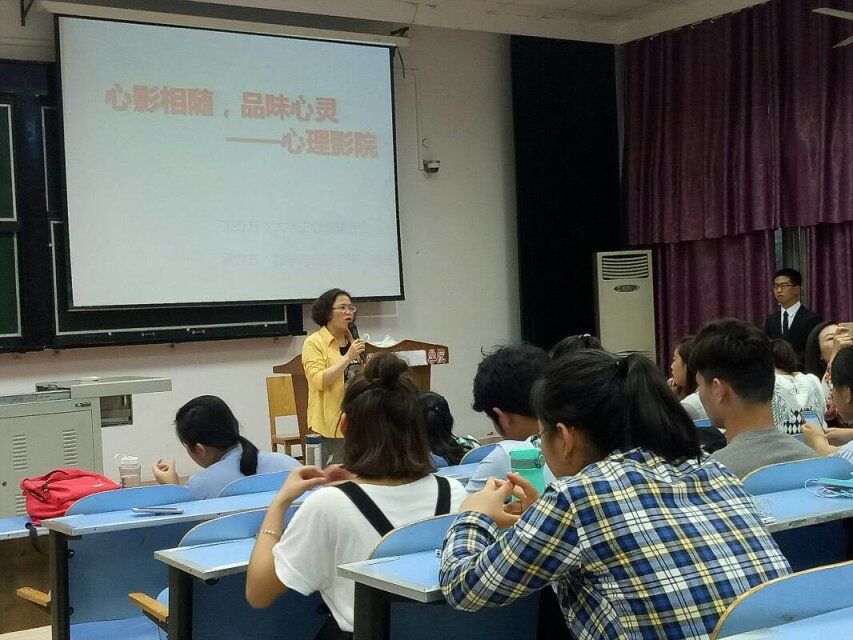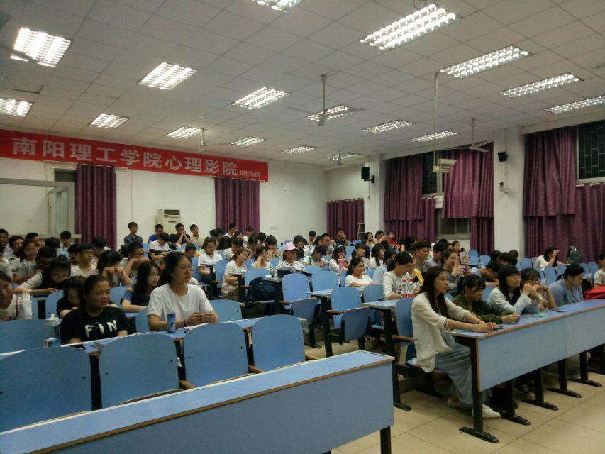 本部讯(学生记者/李瑞利)5月10日晚7点,由南阳理工学院心理中心主办、数学与统计学院心理部承办的心理电影展播活动在五阶二教室举行。校心理健康教育中心宋英副主任、数学与统计学院相关老师和百余名学生参加活动。