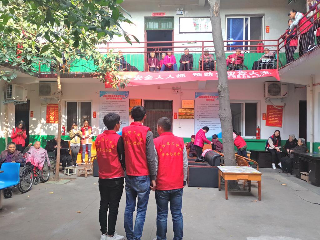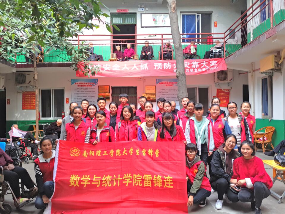 本网讯(学生记者/张捷)10月29日早上8时,数学与统计学院雷锋连在“枣林瑞星老年养护中心”组织志愿者进行“关爱老人,我们正在行动”的活动,参与活动的成员有三十多人。