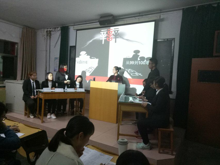 辩论赛由正方对阵反方,正方的辩题为“从0到1难”,反方的辩题为“从99到100难”,两方分别派四人参加辩论赛,依次由辩论手1、2、3、4叙说0到1与99到100难的理由,每人有一分钟的辩论时间,以最后30秒时间为提醒。正方一辩首先阐述0到100难的理由,紧接着对反方提出“从0到1难是因为这是一个由没有变成有,是质变的过程;而99到100难是因为一开始就具备的资格,是量变的过程,那么对人来说这两种哪种更有意义?”,反方一辩对正方一辩的问题进行解答并提出本方的观点及问题。正反双方辩手围绕辩题唇枪舌战、引经据典、你争我辩,博得台下观众阵阵掌声。一对一攻辩论环节中,双方更是措辞精辟、步步紧逼,现场的氛围异常紧张。在随后进行的自由辩论环节中,双方辩手就辩题展开更深层次的辩论,个个妙语连珠,再一次将比赛推向高潮。最后,正方凭借默契的配合、敏捷的思维赢得本次比赛。