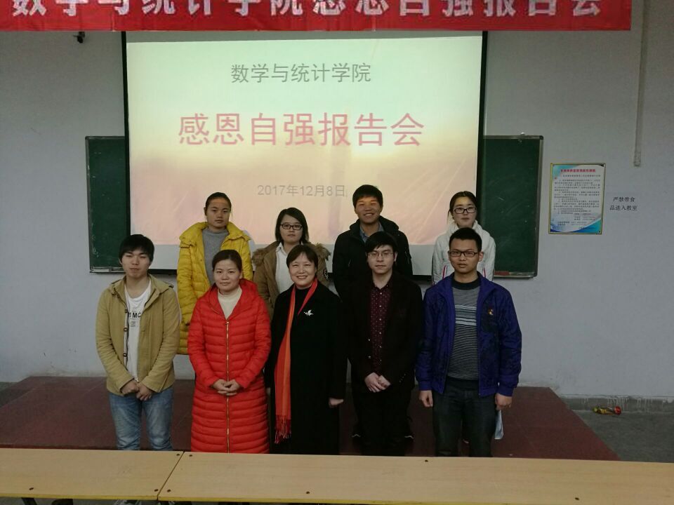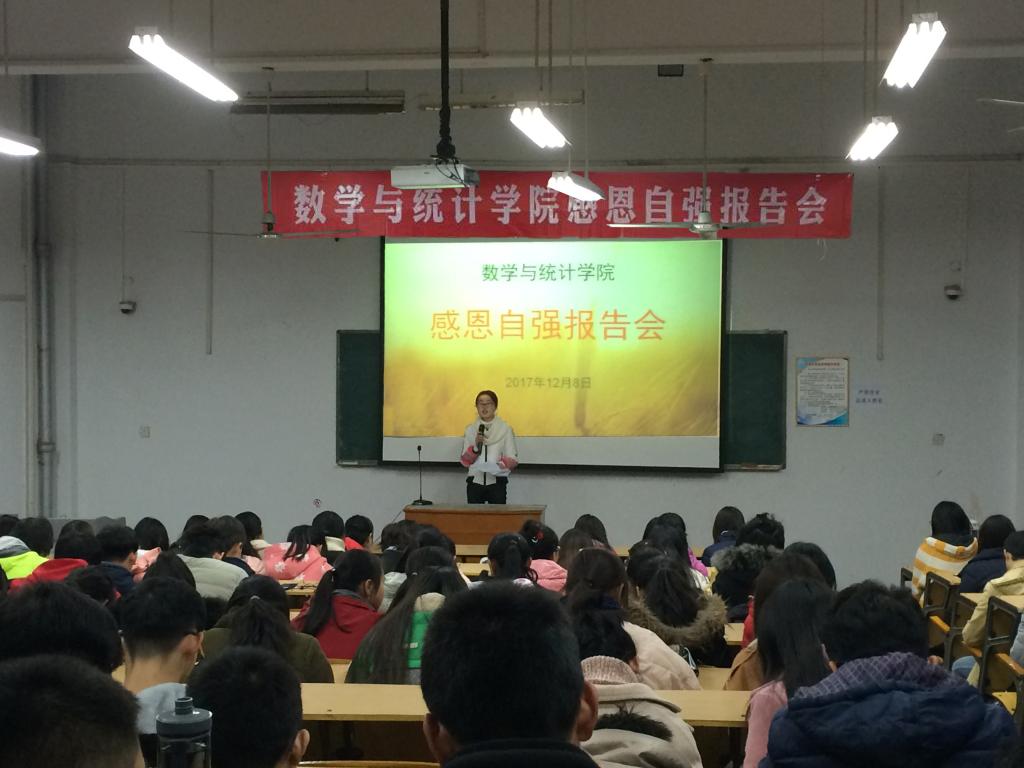本网讯(特约记者/冯清 学生记者/符豆豆、李婷)12月8日晚,我院在3教3201召开“感恩自强”报告会。院党总支副书记陈同勉、辅导员胡丽、冯清出席本次报告会,近200名学生到场聆听。