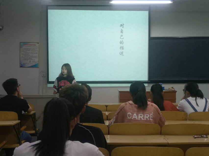 本次比赛分为自我介绍和心理考试两部分。比赛开始,大一和大二心理委员通过ppt进行自我介绍,向大家展现不一样的自己。17级经数班张嘉鑫以自身经历、回首过去、展望未来三方面来讲述自己;在他当选心理委员期间,做到认真倾听他人诉说,为他人排解心中的不愉悦的职责。16级统计班彭卿通过ppt展示了她充当班级的“开心果”;同时她还是一名运动健将,在大学期间荣获多项运动奖。比赛最后,为了能够选拔更优秀的同学参加校级的比赛,现场准备一份测试题,旨在考查同学们的心理基础知识及其掌握程度。