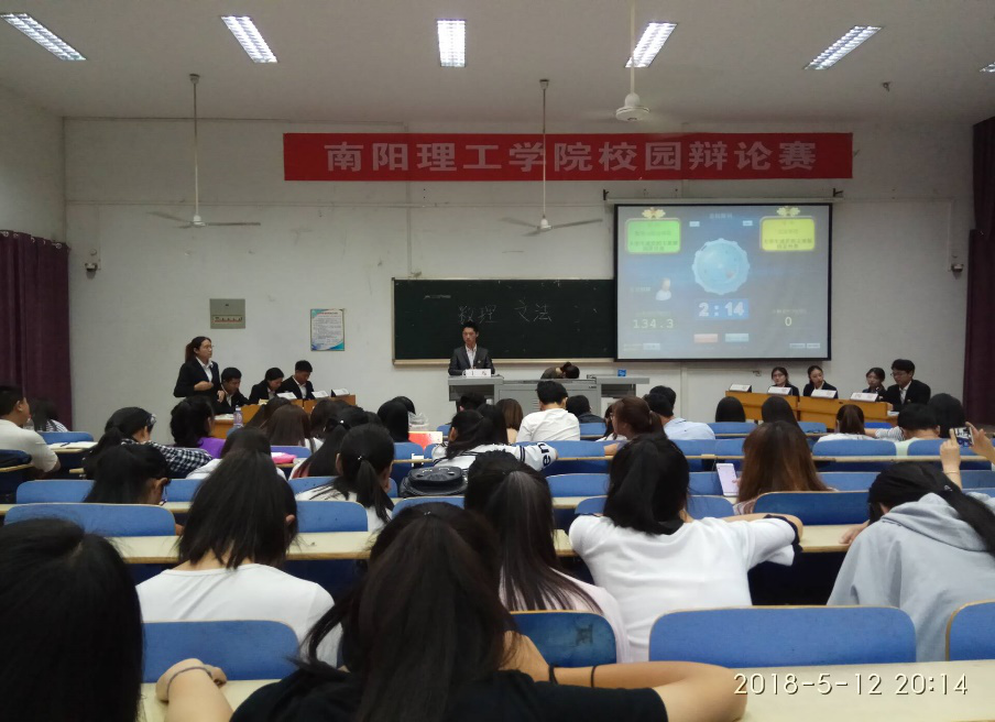 本网讯(学生记者/于嘉慧)5月12日,南阳理工学院校园辩论赛在6阶201教室举行。此次辩论赛在数学与统计学院与文法学院之间展开,各个学院辩论队的优秀辩手担任比赛评委。